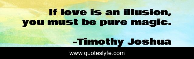 This page presents the quote "If love is an illusion, you must be pure magic.". Author of this quote is Timothy Joshua. This quote is about love, magic, affection,.