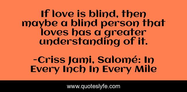 "Criss Jami, Salomé: In Every Inch In Every Mile Quotes." Quoteslyfe.com, 2026. Tue. 13 Jan. 2026. <https://www.quoteslyfe.com/quote/If-love-is-blind-then-maybe-a-917>.