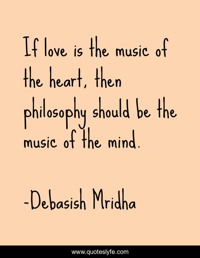 This page presents the quote "If love is the music of the heart, then philosophy should be the music of the mind.". Author of this quote is Debasish Mridha. This quote is about love, philosophy, debasish-mridha, debasish-mridha-m-d, quotes, inspirational, enthusiasm, music-of-the-heart, music-of-the-mind,.