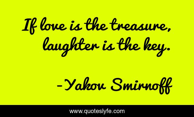 This page presents the quote "If love is the treasure, laughter is the key.". Author of this quote is Yakov Smirnoff. This quote is about treasure, laughter, love is,.