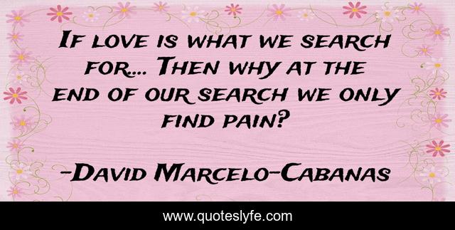 This page presents the quote "If love is what we search for.... Then why at the end of our search we only find pain?". Author of this quote is David Marcelo-Cabanas. This quote is about love, affection,.