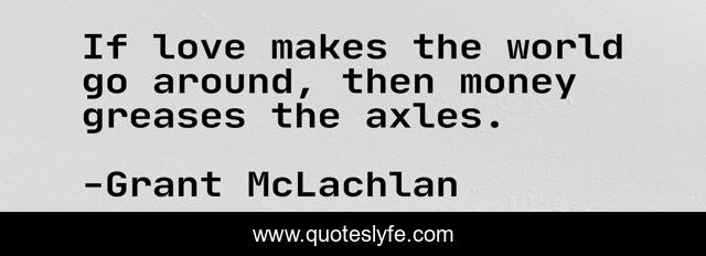 This page presents the quote "If love makes the world go around, then money greases the axles.". Author of this quote is Grant McLachlan. This quote is about money, love, affection,.