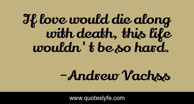 This page presents the quote "If love would die along with death, this life wouldn't be so hard.". Author of this quote is Andrew Vachss. This quote is about loss, love, affection,.