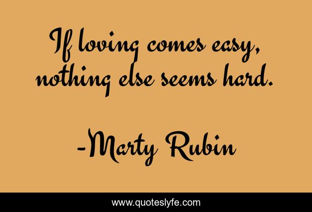 This page presents the quote "If loving comes easy, nothing else seems hard.". Author of this quote is Marty Rubin. This quote is about love, affection, loving,.