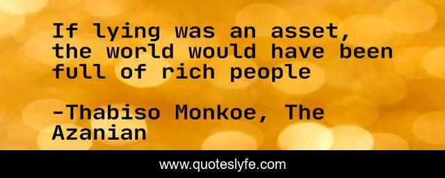 This page presents the quote "If lying was an asset, the world would have been full of rich people". Author of this quote is Thabiso Monkoe, The Azanian. .