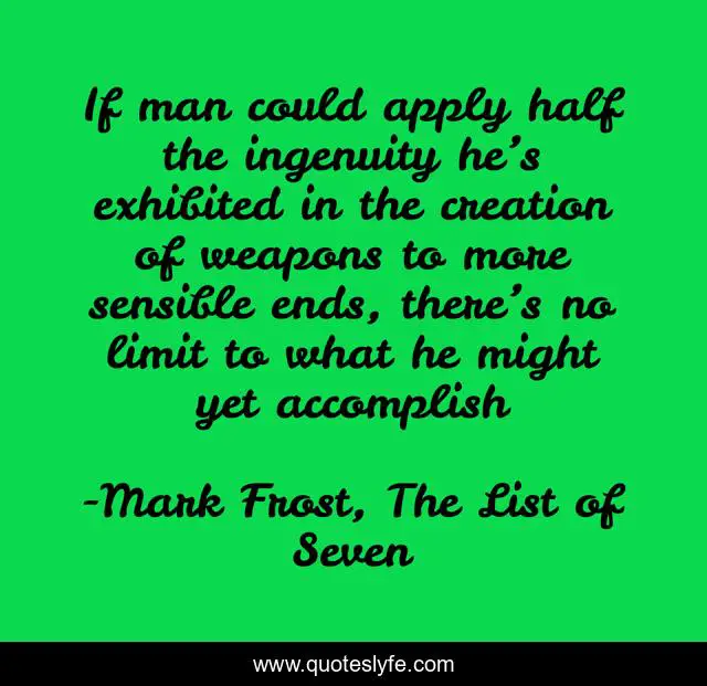 "Mark Frost, The List of Seven Quotes." Quoteslyfe.com, 2025. Mon. 08 Dec. 2025. <https://www.quoteslyfe.com/quote/If-man-could-apply-half-the-ingenuity-146705>.