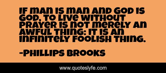 This page presents the quote "If man is man and God is God, to live without prayer is not merely an awful thing: it is an infinitely foolish thing.". Author of this quote is Phillips Brooks. This quote is about god, foolish, prayer,.