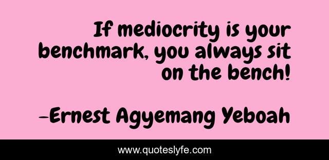 This page presents the quote "If mediocrity is your benchmark, you always sit on the bench!". Author of this quote is Ernest Agyemang Yeboah. This quote is about food-for-thought, mediocrity-and-happiness, make-a-difference, change, think-well,.