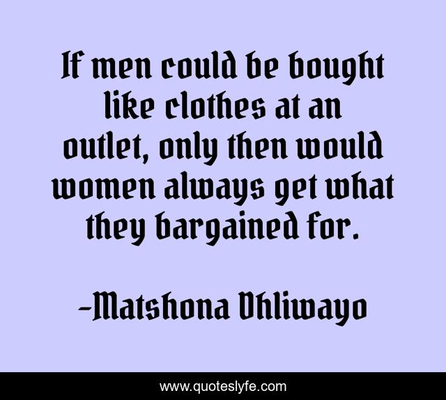"Matshona Dhliwayo Quotes." Quoteslyfe.com, 2025. Tue. 09 Dec. 2025. <https://www.quoteslyfe.com/quote/If-men-could-be-bought-like-clothes-49808>.