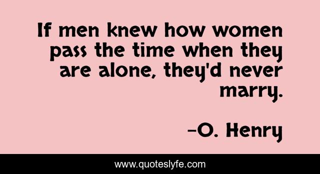This page presents the quote "If men knew how women pass the time when they are alone, they'd never marry.". Author of this quote is O. Henry. This quote is about alone, time, women,.