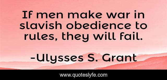 This page presents the quote "If men make war in slavish obedience to rules, they will fail.". Author of this quote is Ulysses S. Grant. This quote is about rules, fail, men,.