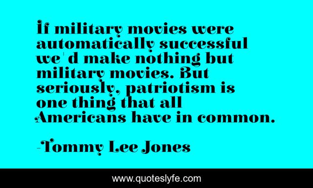 This page presents the quote "If military movies were automatically successful we'd make nothing but military movies. But seriously, patriotism is one thing that all Americans have in common.". Author of this quote is Tommy Lee Jones. This quote is about successful, military, movies,.