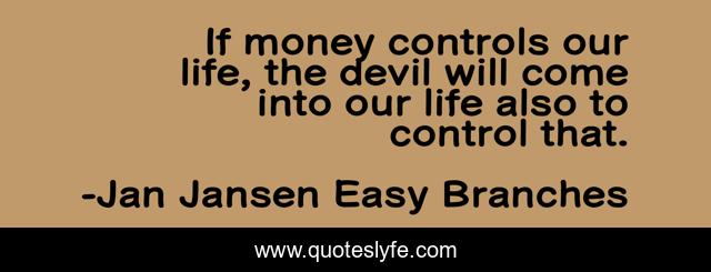 This page presents the quote "If money controls our life, the devil will come into our life also to control that.". Author of this quote is Jan Jansen Easy Branches. This quote is about control, life, live,.