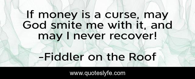 This page presents the quote "If money is a curse, may God smite me with it, and may I never recover!". Author of this quote is Fiddler on the Roof. This quote is about god, humor, money,.