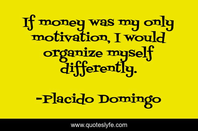 This page presents the quote "If money was my only motivation, I would organize myself differently.". Author of this quote is Placido Domingo. This quote is about myself, organize, motivation,.