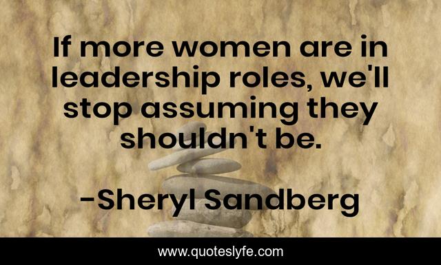 This page presents the quote "If more women are in leadership roles, we'll stop assuming they shouldn't be.". Author of this quote is Sheryl Sandberg. This quote is about women, stop, assuming,.