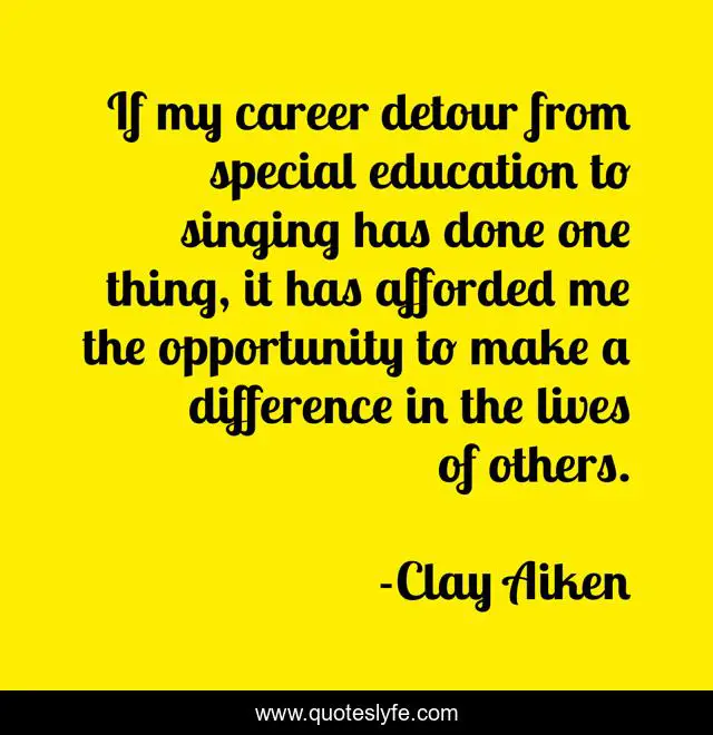 This page presents the quote "If my career detour from special education to singing has done one thing, it has afforded me the opportunity to make a difference in the lives of others.". Author of this quote is Clay Aiken. This quote is about me, opportunity,.