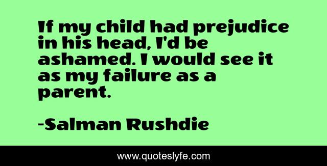 This page presents the quote "If my child had prejudice in his head, I'd be ashamed. I would see it as my failure as a parent.". Author of this quote is Salman Rushdie. This quote is about see, parent, child,.