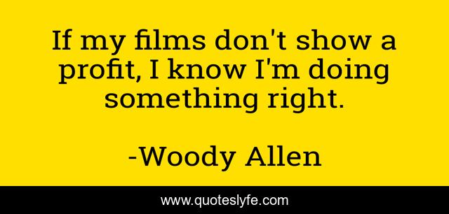This page presents the quote "If my films don't show a profit, I know I'm doing something right.". Author of this quote is Woody Allen. .
