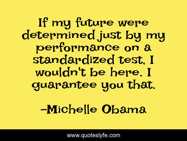 This page presents the quote "If my future were determined just by my performance on a standardized test, I wouldn't be here. I guarantee you that.". Author of this quote is Michelle Obama. This quote is about test, performance,.