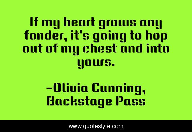 This page presents the quote "If my heart grows any fonder, it's going to hop out of my chest and into yours.". Author of this quote is Olivia Cunning, Backstage Pass. This quote is about heart, sweet,.