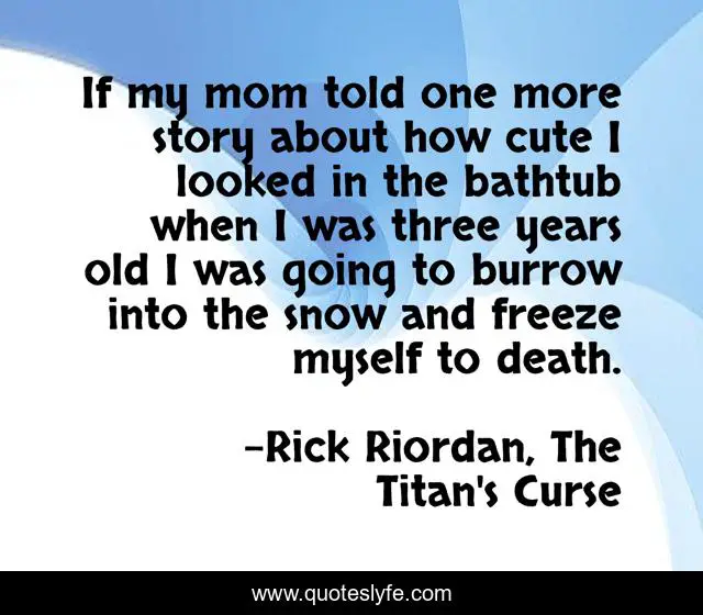 This page presents the quote "If my mom told one more story about how cute I looked in the bathtub when I was three years old I was going to burrow into the snow and freeze myself to death.". Author of this quote is Rick Riordan, The Titan's Curse. This quote is about sally-jackson, percy-jackson,.