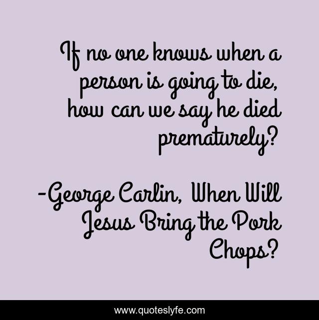 "George Carlin, When Will Jesus Bring the Pork Chops? Quotes." Quoteslyfe.com, 2025. Sat. 06 Dec. 2025. <https://www.quoteslyfe.com/quote/If-no-one-knows-when-a-person-20886>.