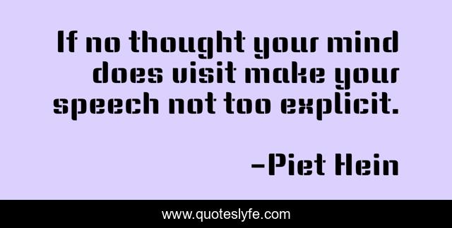 This page presents the quote "If no thought your mind does visit make your speech not too explicit.". Author of this quote is Piet Hein. This quote is about speakers, speeches,.