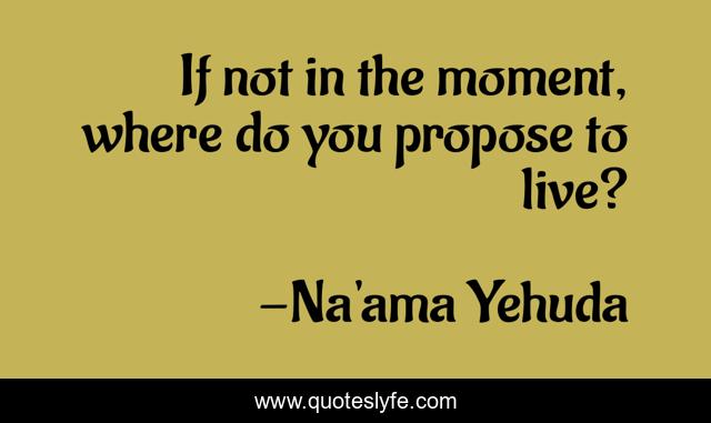 This page presents the quote "If not in the moment, where do you propose to live?". Author of this quote is Na'ama Yehuda. This quote is about reflection, quotes, naamayehuda, living-in-the-now, life-lessons, self-help, inspiration,.