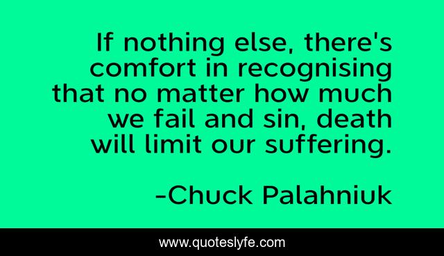 This page presents the quote "If nothing else, there's comfort in recognising that no matter how much we fail and sin, death will limit our suffering.". Author of this quote is Chuck Palahniuk. This quote is about suffering, comfort, sin,.