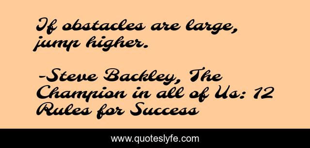 "Steve Backley, The Champion in all of Us: 12 Rules for Success Quotes." Quoteslyfe.com, 2025. Mon. 15 Dec. 2025. <https://www.quoteslyfe.com/quote/If-obstacles-are-large-jump-higher-32423>.