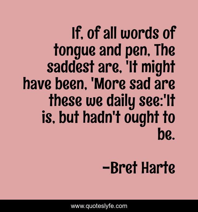 This page presents the quote "If, of all words of tongue and pen, The saddest are, 'It might have been, 'More sad are these we daily see:'It is, but hadn't ought to be.". Author of this quote is Bret Harte. .