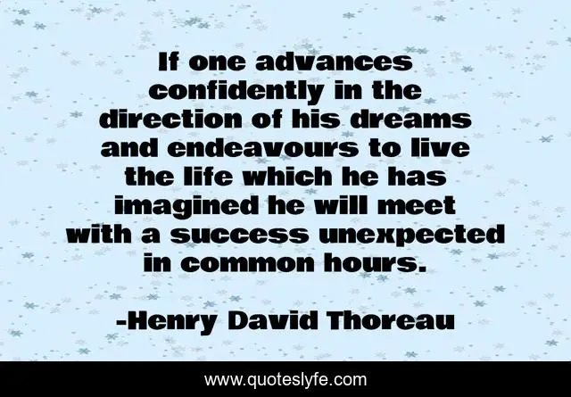 This page presents the quote "If one advances confidently in the direction of his dreams and endeavours to live the life which he has imagined he will meet with a success unexpected in common hours.". Author of this quote is Henry David Thoreau. .