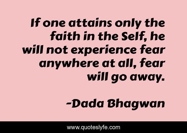 This page presents the quote "If one attains only the faith in the Self, he will not experience fear anywhere at all, fear will go away.". Author of this quote is Dada Bhagwan. This quote is about faith, fear, definition-of-fear, spiritual, faith-in-the-self,.