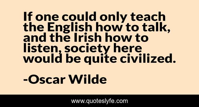 This page presents the quote "If one could only teach the English how to talk, and the Irish how to listen, society here would be quite civilized.". Author of this quote is Oscar Wilde. This quote is about teach, talk, listen,.