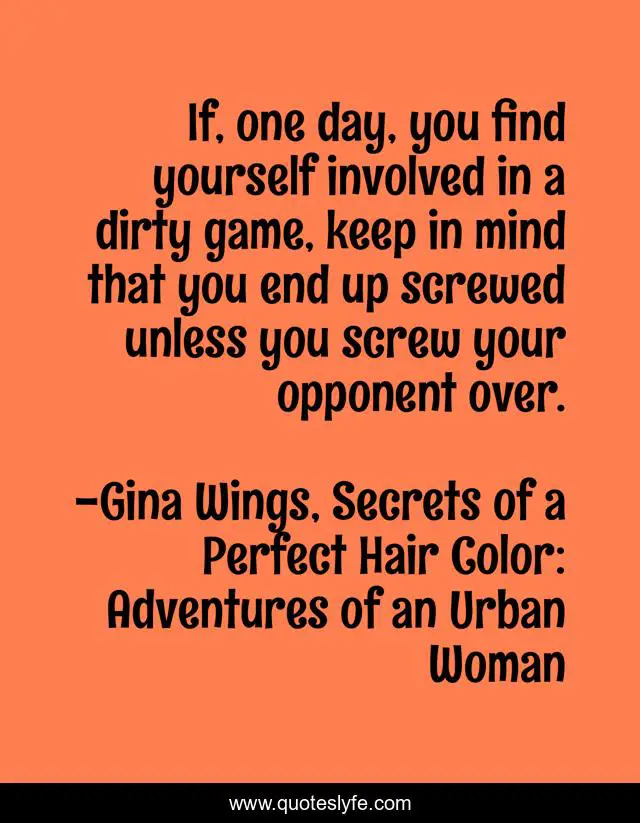This page presents the quote "If, one day, you find yourself involved in a dirty game, keep in mind that you end up screwed unless you screw your opponent over.". Author of this quote is Gina Wings, Secrets of a Perfect Hair Color: Adventures of an Urban Woman. This quote is about games, revenge,.