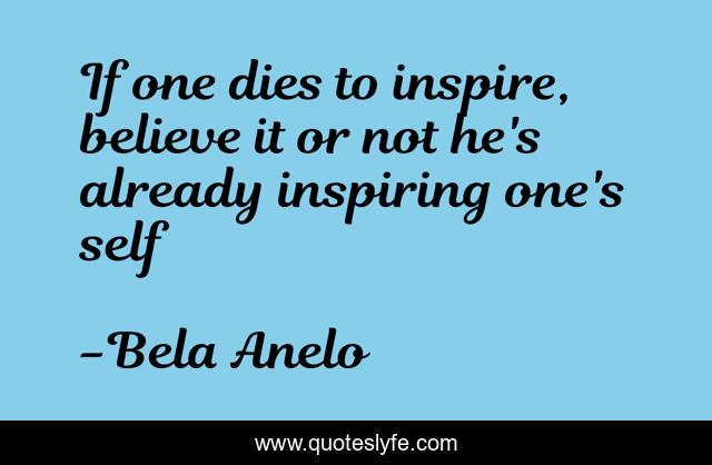 "Bela Anĝelo Quotes." Quoteslyfe.com, 2025. Sat. 06 Dec. 2025. <https://www.quoteslyfe.com/quote/If-one-dies-to-inspire-believe-it-124196>.