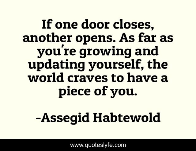 This page presents the quote "If one door closes, another opens. As far as you're growing and updating yourself, the world craves to have a piece of you.". Author of this quote is Assegid Habtewold. This quote is about crave, grow, update, opportunities, doors,.