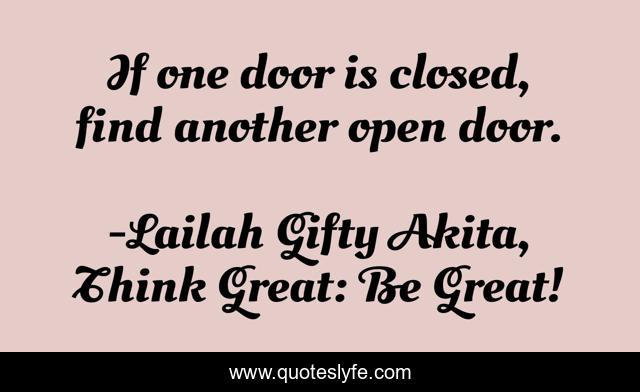 "Lailah Gifty Akita, Think Great: Be Great! Quotes." Quoteslyfe.com, 2025. Fri. 05 Dec. 2025. <https://www.quoteslyfe.com/quote/If-one-door-is-closed-find-another-94900>.