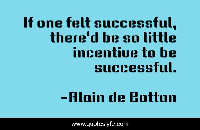 This page presents the quote "If one felt successful, there'd be so little incentive to be successful.". Author of this quote is Alain de Botton. This quote is about self-perception, success, feelings,.