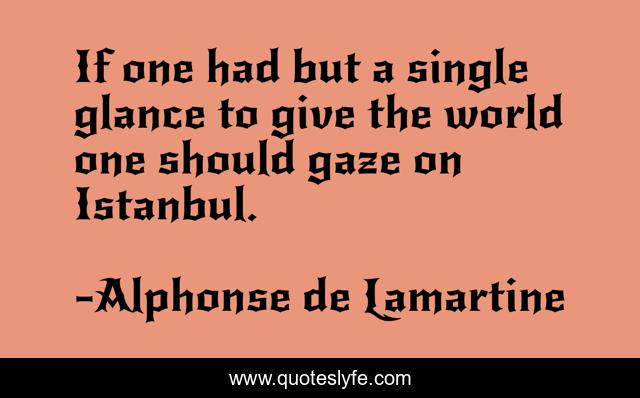 This page presents the quote "If one had but a single glance to give the world one should gaze on Istanbul.". Author of this quote is Alphonse de Lamartine. This quote is about travel, travellers,.