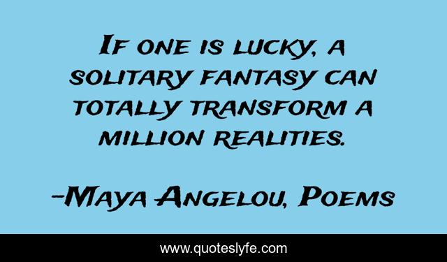 "Maya Angelou, Poems Quotes." Quoteslyfe.com, 2025. Sat. 06 Dec. 2025. <https://www.quoteslyfe.com/quote/If-one-is-lucky-a-solitary-fantasy-93321>.