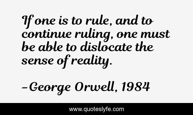 This page presents the quote "If one is to rule, and to continue ruling, one must be able to dislocate the sense of reality.". Author of this quote is George Orwell, 1984. This quote is about knowledge, power, reality,.