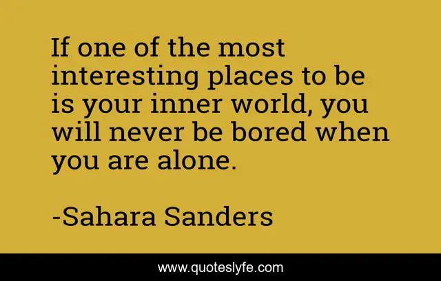 This page presents the quote "If one of the most interesting places to be is your inner world, you will never be bored when you are alone.". Author of this quote is Sahara Sanders. This quote is about wisdom, inspirational-attitude, inspirational, life-philosophy, enthusiasm, inner-world,.