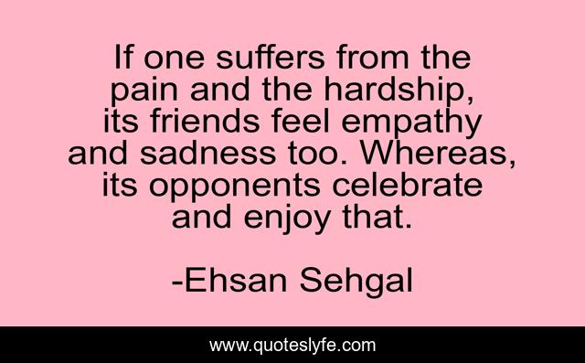 This page presents the quote "If one suffers from the pain and the hardship, its friends feel empathy and sadness too. Whereas, its opponents celebrate and enjoy that.". Author of this quote is Ehsan Sehgal. .