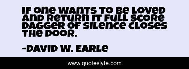 This page presents the quote "If one wants to be loved and return it full score dagger of silence closes the door.". Author of this quote is David W. Earle. This quote is about relationships, communication, recovery, shame,.