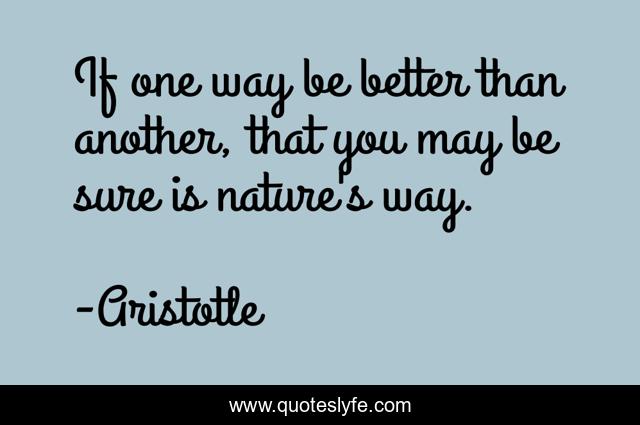 This page presents the quote "If one way be better than another, that you may be sure is nature's way.". Author of this quote is Aristotle. This quote is about better, way,.