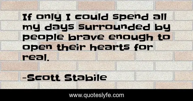 This page presents the quote "If only I could spend all my days surrounded by people brave enough to open their hearts for real.". Author of this quote is Scott Stabile. This quote is about brave, love, courage, happiness, affection, inspiration,.