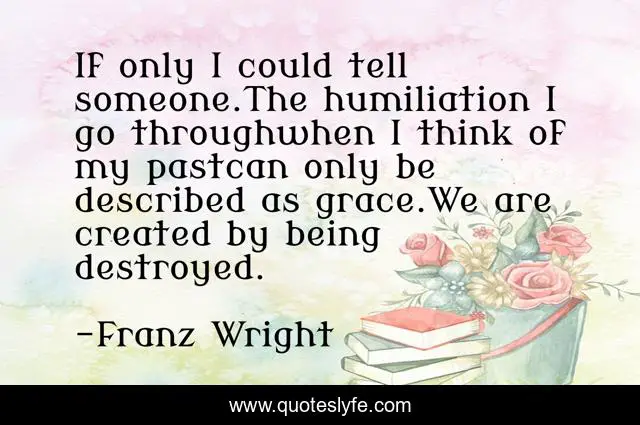 This page presents the quote "If only I could tell someone.The humiliation I go throughwhen I think of my pastcan only be described as grace.We are created by being destroyed.". Author of this quote is Franz Wright. This quote is about death, life, doubt, ptsd, faith,.
