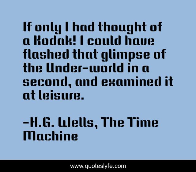This page presents the quote "If only I had thought of a Kodak! I could have flashed that glimpse of the Under-world in a second, and examined it at leisure.". Author of this quote is H.G. Wells, The Time Machine. .